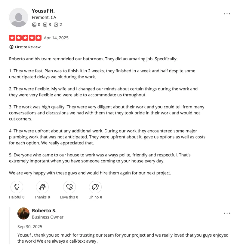 Get detailed, line-item pricing for your East Bay kitchen, bathroom, ADU, or addition—with zero hidden costs or surprises.